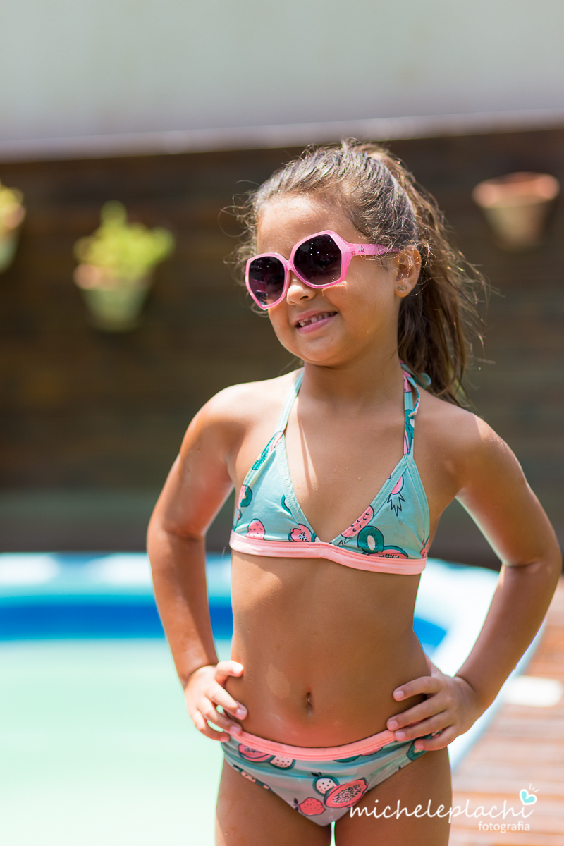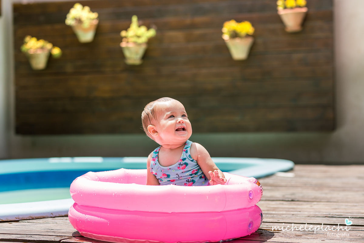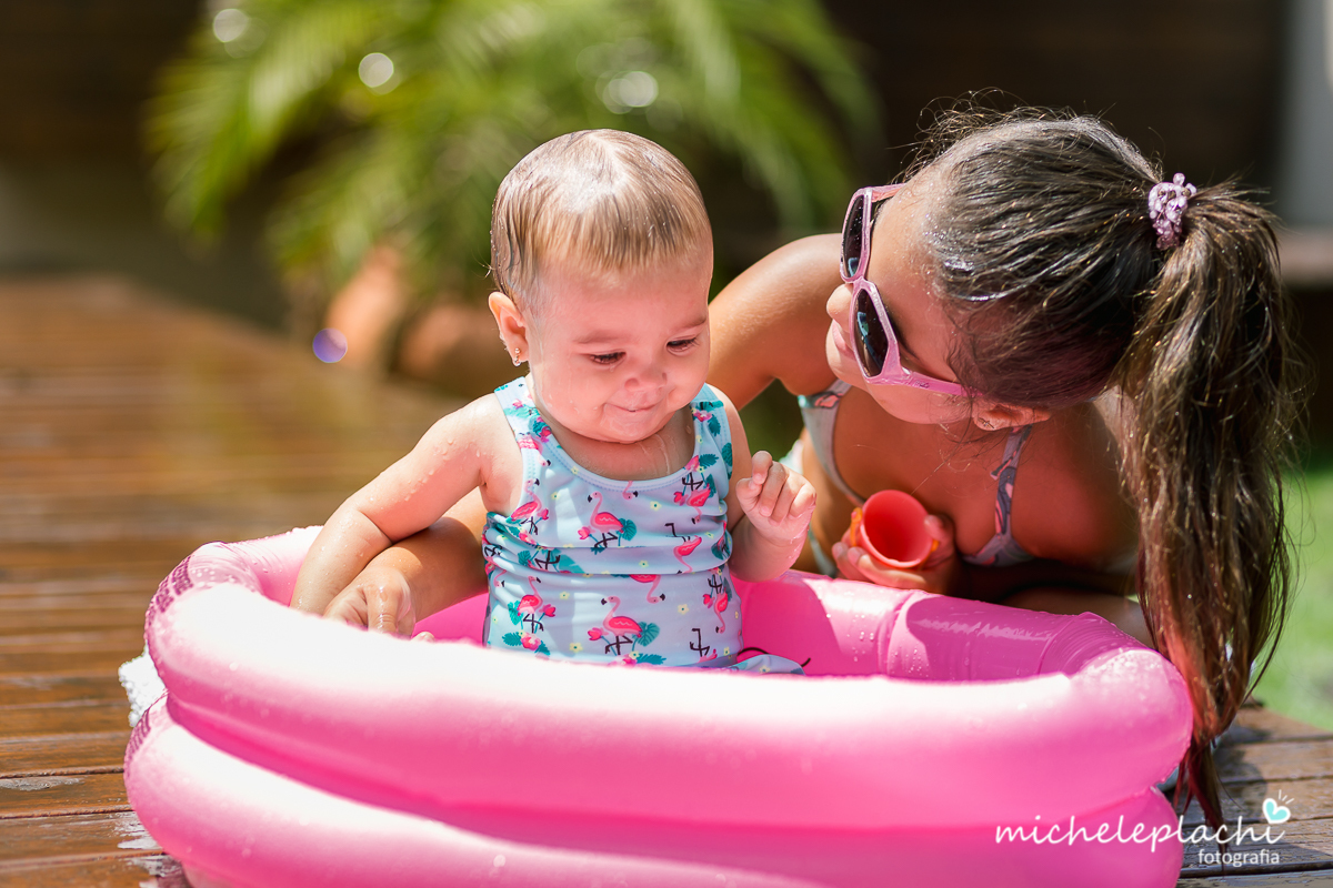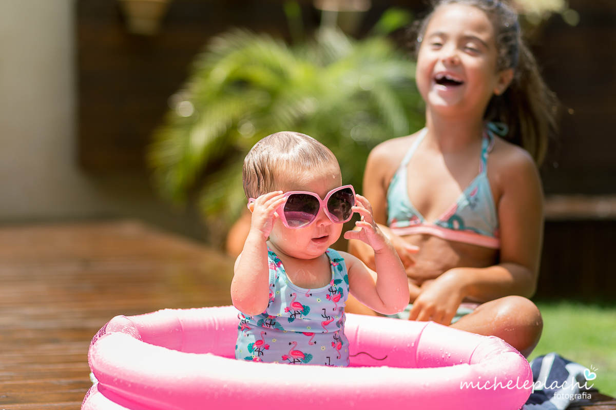 Na casa da pequena Alice, fotografamos no quarto e na piscina. Foi super divertido!