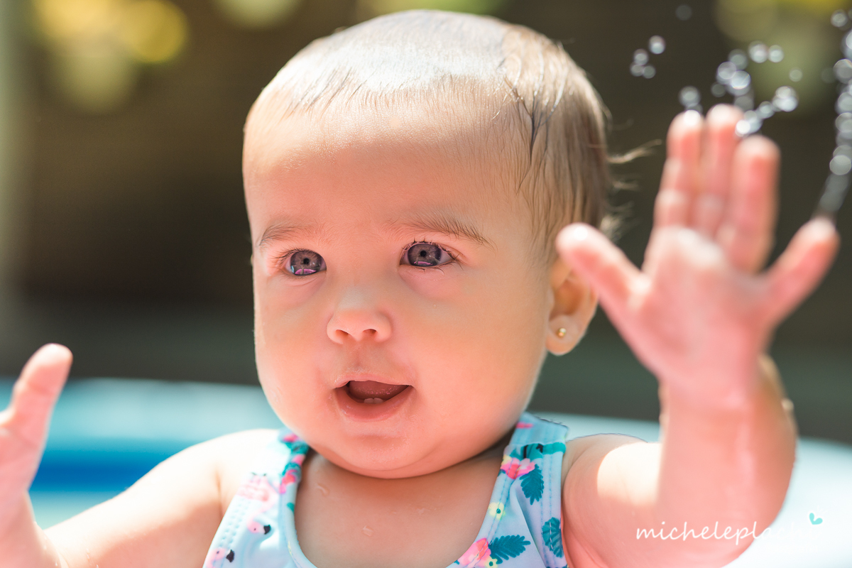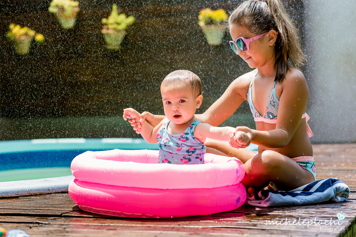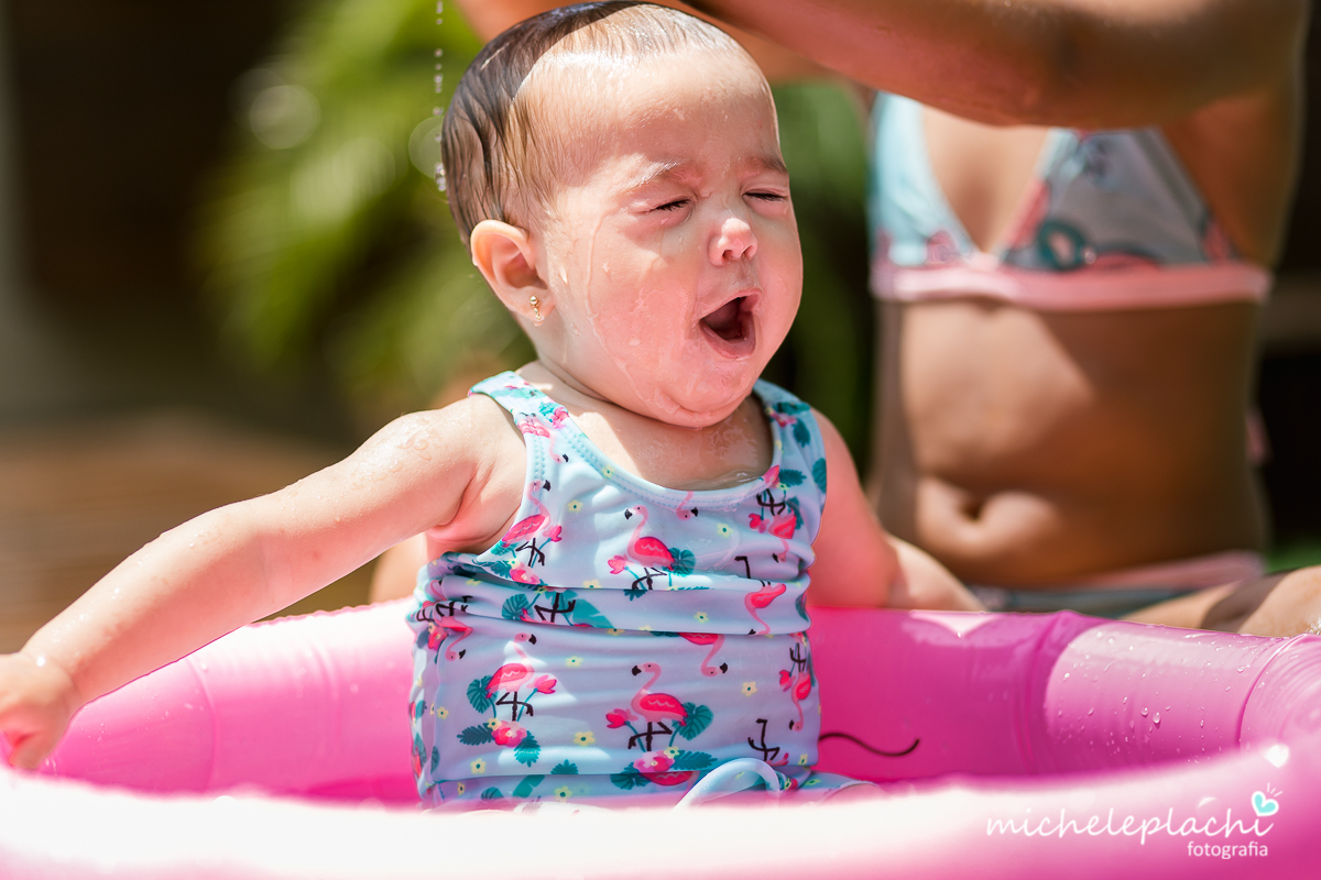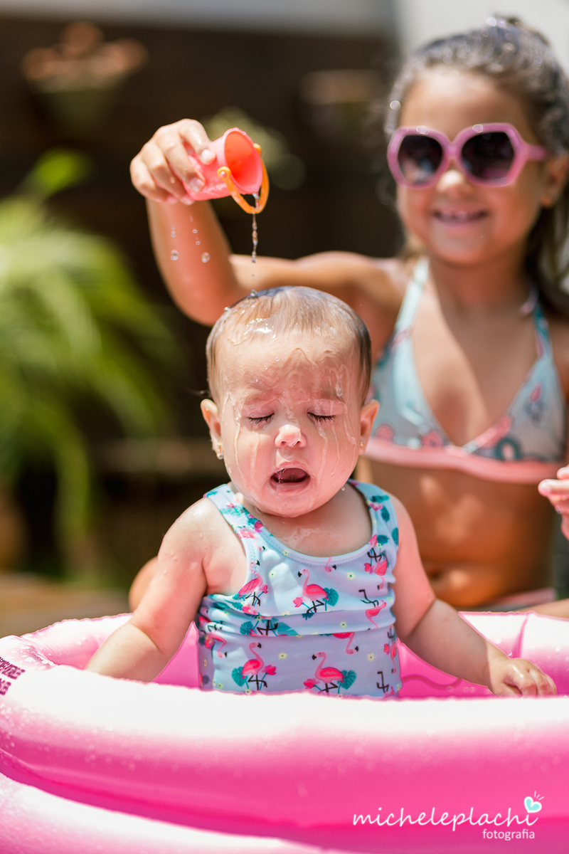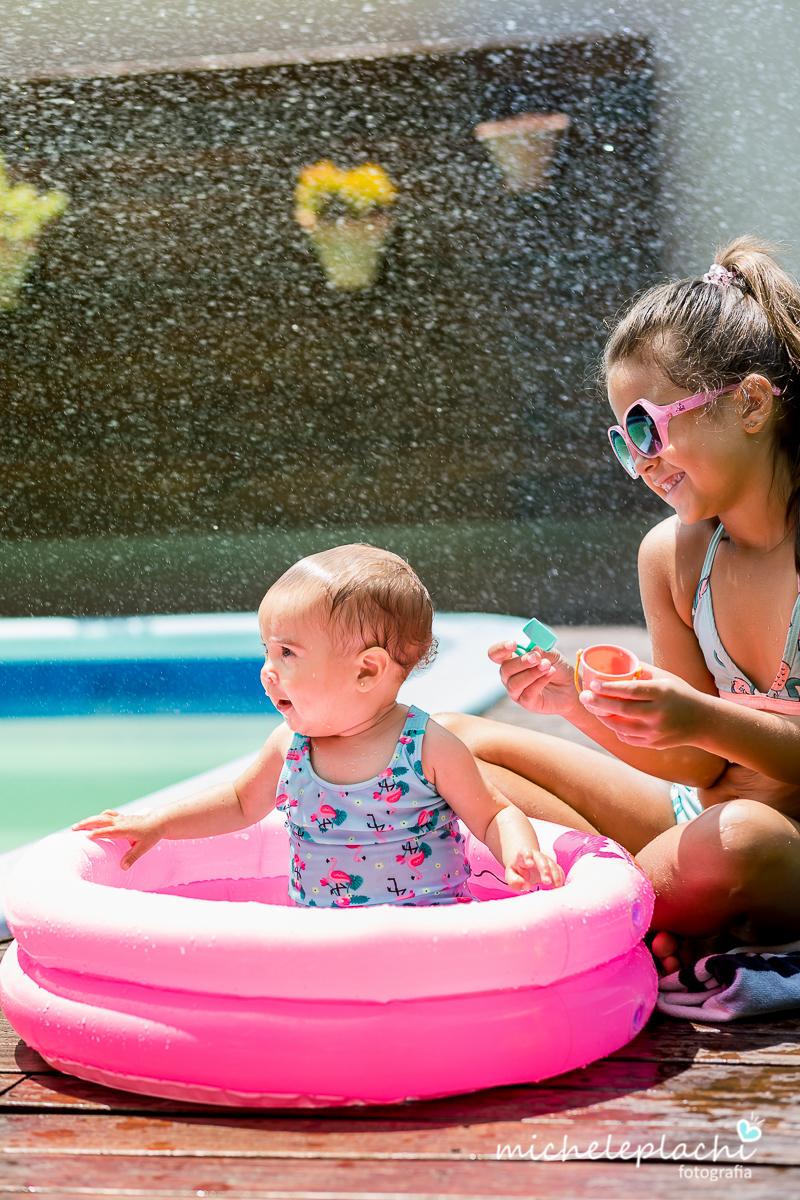Na casa da pequena Alice, fotografamos no quarto e na piscina. Foi super divertido!