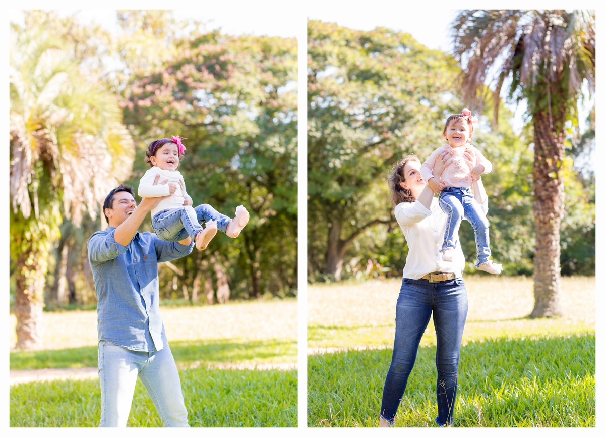 Tia Mi ficou um pouco mais de longe acompanhando as gêmeas Nicole e Thaís se divertirem com o papai e a mamãe.