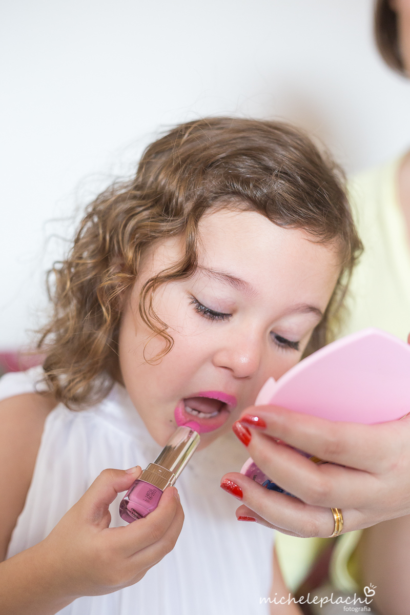 A Valentina, bom... essa é um caso a parte! Além de ser um doce, ela mesma escolhe a roupa, se arruma, pinta as unhas e se maquia - no caso, melhor que eu! rsrsrs!