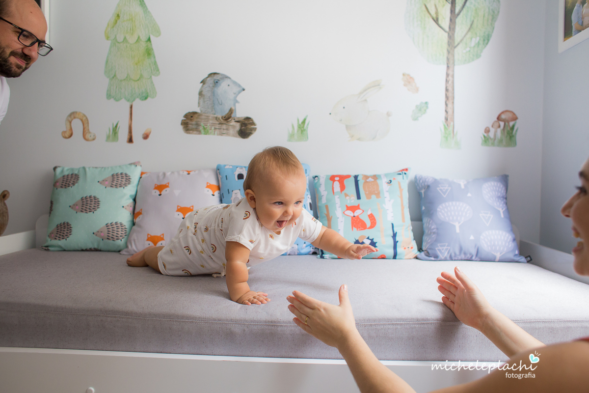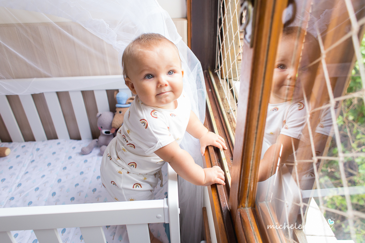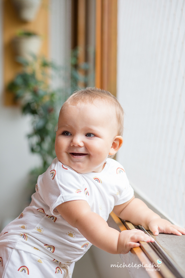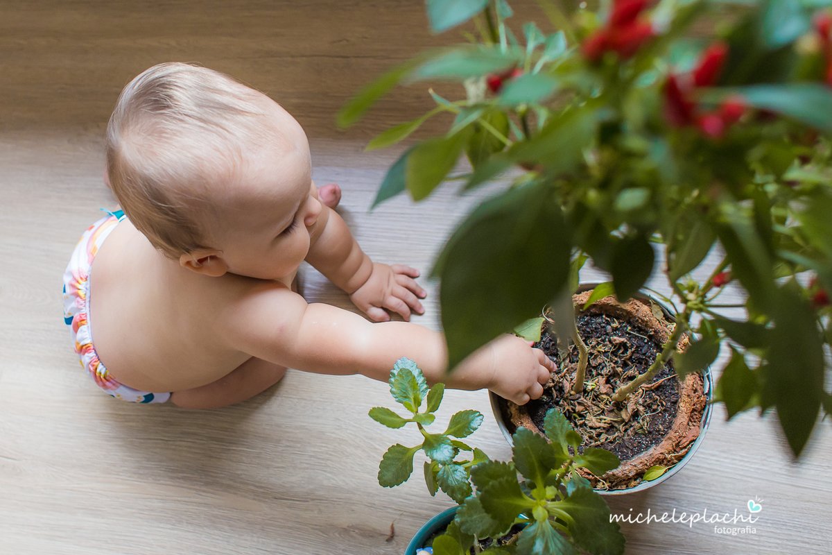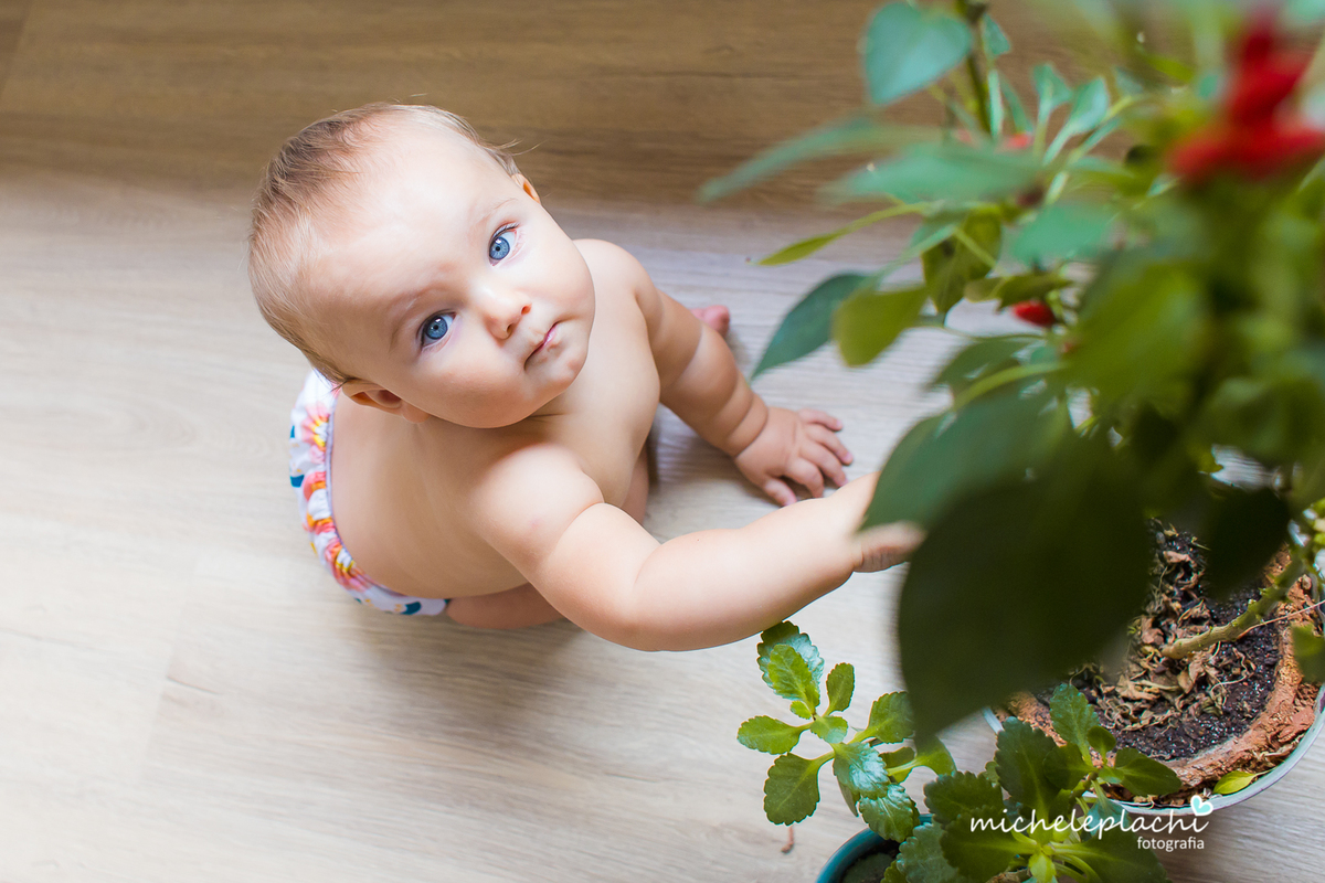 Francisco engatinhou pela casa, fez "cara de bichinho" e mostrou pra tia Mi que adora cuidar das plantinhas!
